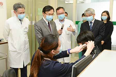譚俊榮隨後在衛生局李展潤、副局長兼仁伯爵綜合醫院院長郭昌宇、醫務主任李偉成等陪同下,視察了仁伯爵綜合醫院急診部兒科及成人的候診情況,並與在場人士親切交流,他充分肯定衛生局對預防流感的工作,感謝醫護團隊的努力,勉勵要繼續做好各項應對疫情工作,保障居民生命健康。
