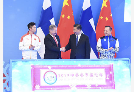 簽字儀式後,習近平同尼尼斯托共同出席了“2019中芬冬季運動年”啟動儀式。習近平在致辭中指出,新中國第一次走上奧運賽場就是參加1952年芬蘭赫爾辛基奧運會,五星紅旗第一次在奧林匹克體育場上昇起。中芬冬季運動發展契合度高、互補性強,合作潛力巨大。相信“2019中芬冬季運動年”將推動兩國體育合作邁上新台階,共同為中芬人文交流注入新活力,不斷推動中芬面向未來的新型合作夥伴關係邁上新台階。尼尼斯托表示,中國已成為世界體育大國。芬中在體育領域結緣已久。芬蘭支持中國成功舉辦2022年冬奧會,很高興成為第一個同中國開啟冬季運動年的國家,相信這將進一步促進兩國人民的友誼。中國正在向冬季運動強國邁進,芬蘭願助一臂之力。