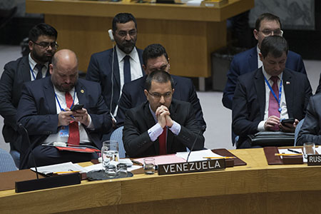 當天應邀出席安理會會議的委內瑞拉外長阿雷亞薩稱,美國等國家對委內瑞拉國內局勢的粗暴干涉嚴重違反《聯合國憲章》等國際法,用武力要挾則是更惡劣的行為。他呼籲各國遵守《聯合國憲章》,尊重委內瑞拉的自主選擇。