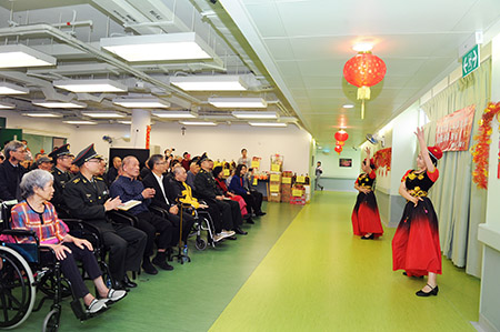 【特訊】中華民族傳統的新春佳節即將來臨之際,駐澳門部隊副參謀長高志軍大校與部分官兵代表,在澳門特別行政區社會工作局局長黃艷梅和工作人員的陪同下,於1月28日上午走進澳門明愛恩暉長者綜合服務中心慰問長者。