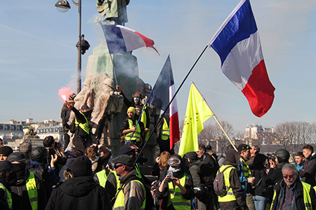有示威者在途中試圖改變遊行路線,很快被眾多防暴警察阻止。儘管警方嚴密戒備,當天還是發生了一些暴力行為。示威者向警察投擲爆竹和雜物,並點燃多個垃圾桶。警察則向示威者施放催淚瓦斯。入夜後,警方封鎖了香榭麗舍大街,防止示威者再度進入。