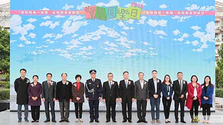 昨日「警民同樂日2019」啟動儀式假塔石廣場舉行,由保安司司長黃少澤、警察總局局長馬耀權、中聯辦警聯部部長于成平、以及一眾社區警務聯絡機制的社團代表一同擔任主禮嘉賓。