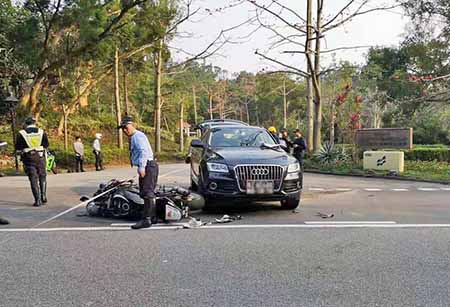 黑沙馬路私家車與電單車相撞鐵騎士捲車底