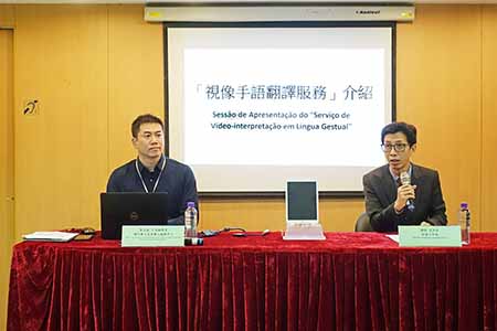 為進一步完善對聾人及聽障人士的無障礙資訊服務,社會工作局與澳門聾人協會合作推出「視像手語翻譯服務」。有關服務利用設於社會工作局20個對外服務點的平板電腦,由澳門聾人協會聾人服務中心的手語翻譯人員透過視像軟件,為前往社會工作局尋求和接受服務的聾人及聽障人士提供即時視像手語翻譯服務。這項服務除了能夠方便聾人及聽障人士外,亦有助提高手語翻譯服務資源的運用效率,節省了手語翻譯人員的交通及等候時間,讓既有的資源能夠服務更多有需要的人士。