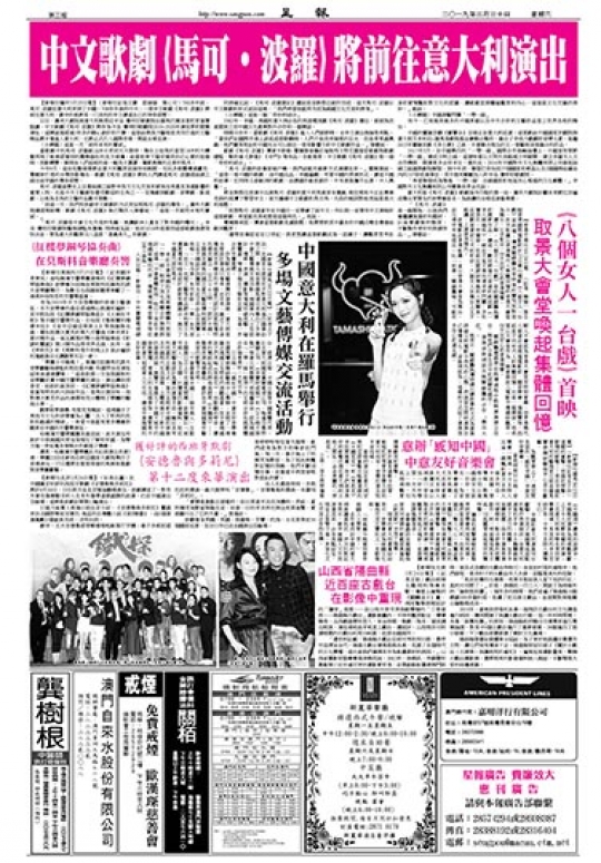 中文歌劇《馬可‧波羅》將前往意大利演出