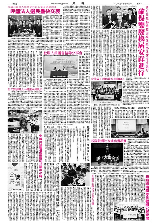 【特訊】行政長官選舉管理委員會主席宋敏莉昨日表示,法人選民向行政公職局提交《提名表簽署人登記表》將於本月二十三日即下周二截止,她呼籲相關法人選民盡快提交;而法人選民簽署提名表代表的聯絡資料,將陸續上載至行政長官選舉網頁。另外,宋敏莉表示,選管會於上週五已收到行政長官選舉委員會二十二名立法議員的委員名單,其他界別尚未收到。