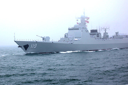 14時30分許,檢閱艦到達預定海域。海軍司令員沈金龍報告受閱部隊準備完畢,習近平下達檢閱開始的命令。