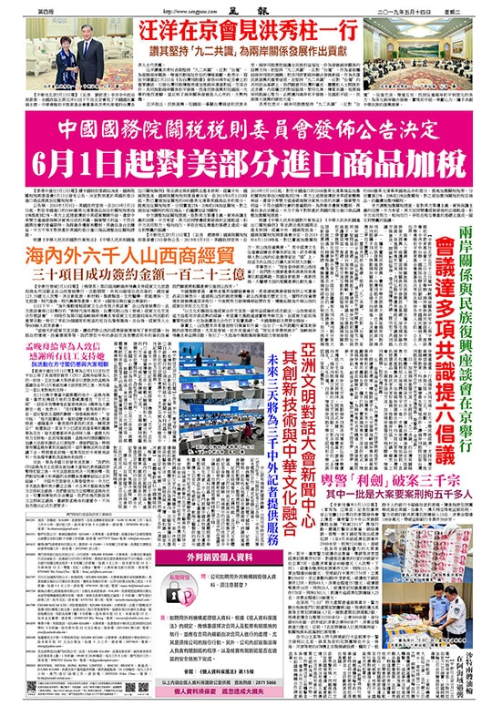 中國國務院關稅稅則委員會發佈公告決定 6月1日起對美部分進口商品加稅