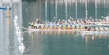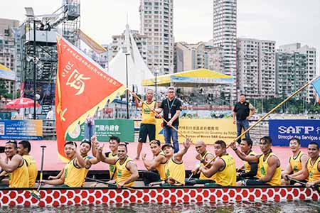 【特訊】由體育局及中國澳門龍舟總會主辦,市政署及行政公職局協辦的“2019澳門國際龍舟賽”,昨日(2日)在南灣湖水上活動中心進行第二日賽事。經過一番激烈角逐之後,澳博金禧在澳門標準龍500米公開組力壓多隊奪冠,而澳門標準龍500米女子組的冠軍則由澳門青少年發展協會奪得,公職人員小龍200米邀請賽由香港康樂及文化事務署稱王。