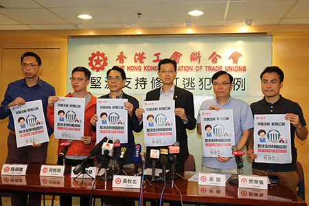香港廣東社團總會當日亦召開發佈會表示支持修例,認為修例可以進一步完善香港法治,有利香港社會長治久安。該會主席梁亮勝認為,參與反修例遊行的絕大部分市民都希望香港繼續穩定繁榮,但不排除有一小撮人想利用遊行生事,破壞香港的治安,懷疑他們背後有外國勢力的支持。
