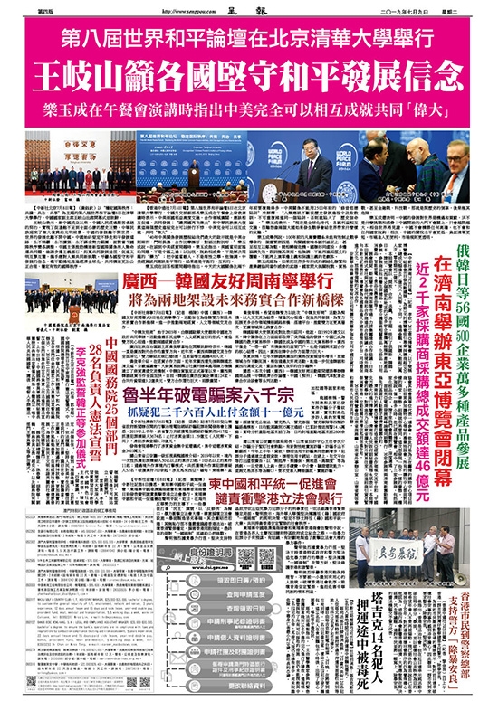 第八屆世界和平論壇在北京清華大學舉行 王岐山籲各國堅守和平發展信念 樂玉成在午餐會演講時指出中美完全可以相互成就共同「偉大」