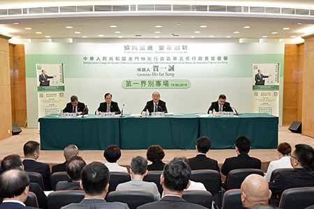 【特訊】第五任行政長官候選人賀一誠昨日出席選委會第一界別座談,現場有51名選委出席,共有8名選委提問。普遍關注經濟多元、旅遊承載力、中葡平台、公共採購法、專才輸入、博彩業發展及都市更新。