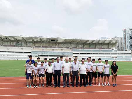第五任行政長官候選人賀一誠與競選團隊昨日先到澳門氹仔奧林匹克體育中心參觀曲棍球場、游泳館、羽毛球場等體育設施,並到運動場與正在練習的田徑運動員交流。其後到路環小型賽車場參觀,了解各項體育設施、場地租借使用率等情況。期間,賀一誠與田徑總會的運動員交流及勉勵學員。