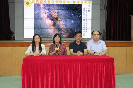 昨日李寶田、天文小組指導老師金鑫、主任黃詠儀和老師張子隆出席新聞發佈會介紹展覽詳情。