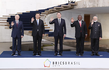 習近平指出,這次會晤是在世界經濟發展和國際格局演變的關鍵時刻舉行的。新科技革命和產業變革方興未艾。新興市場國家和發展中國家的崛起勢頭不可逆轉,為全球經濟治理體系變革注入強勁動力。令人擔憂的是,保護主義、單邊主義愈演愈烈,治理赤字、發展赤字、信任赤字有增無減,世界經濟中不穩定不確定因素明顯上昇。面對百年未有之大變局,金磚國家應該順應時代潮流,回應人民呼聲,展現應有的責任擔當,在追求發展道路上矢志不移,在團結合作歷程中攜手奮進,為人民謀幸福,為世界謀發展。