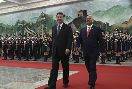 會談前,習近平在人民大會堂北大廳為帕努埃洛舉行歡迎儀式。彭麗媛、楊潔篪、王東明、王毅、楊傳堂、何立峰等參加。