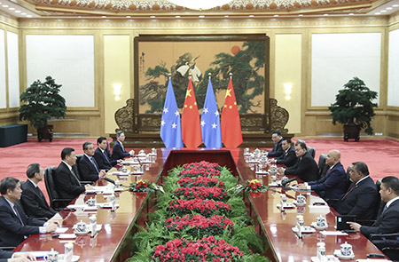 【中新社北京12月13日電】(記者 張蔚然)12月13日,中國國家主席習近平在人民大會堂同密克羅尼西亞聯邦總統帕努埃洛會談。