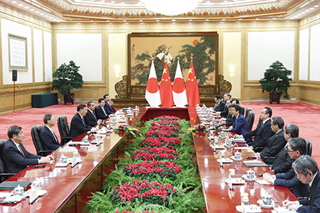 習近平強調,當今世界正經歷百年未有之大變局。形勢越是複雜,越需要我們保持從容不迫的戰略定力,越需要我們具備登高望遠的全局視野。運籌新時代的中日關係,首先需要明確戰略共識。應堅持以全球大視野思考和謀劃兩國關係,堅持在相互尊重、求同存異基礎上加強溝通協調,積極推動構建攜手合作、互利雙贏的新格局。這應該成為雙方發展新時代中日關係的共同戰略指引。雙方要把握正確方向,恪守中日四個政治文件確立的各項原則,妥善處理有關重大敏感問題,鞏固兩國關係政治基礎。這是雙方發展新時代中日關係必須始終堅守的根本,任何時候都不能含糊和動搖。雙方應該踐行中日“互為合作夥伴、互不構成威脅”的政治共識,本著“化競爭為協調”的精神,推動兩國關係始終沿著正確軌道持續向前發展。
