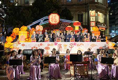 昨日市政署管委會主席戴祖義、諮委會主席司徒民義、郵電局局長劉惠明、旅遊局局長文綺華、仁慈堂值理會主席飛安達、市政署管委會副主席羅志堅、諮委會副主席鍾國榮、以及市政署管委會和諮委會多名委員出席主持亮燈儀式。其後,市政署還安排了澳門青年中樂團演奏三首中樂,吸引了大批市民駐足欣賞,場面熱鬧。