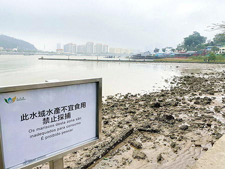 另外,由於堤岸陡斜、石灘濕滑不平且滿佈尖利砂石,當局在巡邏中偶有發現部份人罔顧安全風險,甚至帶同孩童跨越堤岸進入石灘,垂釣捕漁或採挖水生動物嬉戲,有損自然生態及野生動物棲息環境,更可能影響個人及公共安全。市政署早前已於路環十月初五馬路沿岸加設警示標語,並將進一步審視沿岸環境,增設相應警示牌,提醒公眾注意。