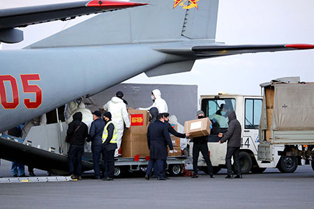 隨專家組當天抵哈的還有數噸防疫物資,包括醫用口罩、防護器材、無創呼吸機和中醫藥等。哈副外長阿希克巴耶夫指出,“這不是中國夥伴第一次向我們提供援助。前不久,首批援助物資已在阿拉木圖完成交接。”