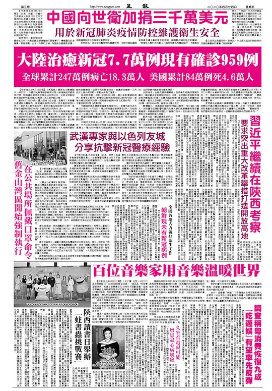 放眼海外,全球疫情持續昇級。世界衛生組織疫情報告顯示,截至歐洲中部時間4月22日10時,全球累計新冠肺炎確診病例數超過247萬。另據美國約翰斯·霍普金斯大學實時統計數據,截至北京時間23日9時38分,全球累計確診病例數逾262萬,達2624846例,超過18.3萬人死亡。