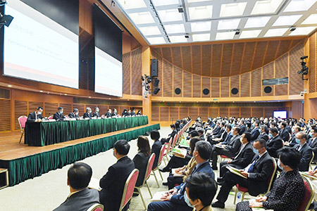 行政長官賀一誠於日前在科學館會議中心會議廳,與各公共部門領導舉行「跟進和落實2020年度施政工作交流會」。