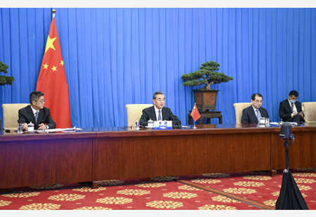 【中新社北京5月13日電】中國國務委員兼外交部長王毅13日在北京出席上海合作組織成員國外長視頻會議。