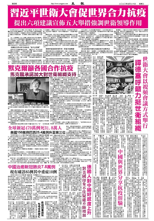 【中新社布魯塞爾5月19日電】日內瓦消息:第73屆世界衛生大會18日以視頻會議方式開幕,中國常駐聯合國日內瓦辦事處和瑞士其他國際組織副代表李松當選為大會副主席。世衛組織總干事譚德塞在發言中強調,世衛組織將全面評估新冠肺炎疫情應對工作,但世界不需要另一個“組織”,世衛組織的作用應得到加強而不是削弱。