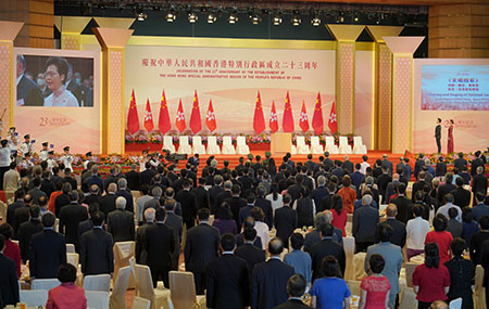 當日,香港各界同時推出多項慶祝活動,迎接香港特別行政區第23個生日,包括在中環摩天輪附近高唱國歌、輪船在維多利亞港鳴笛、4輛觀光巴士和花車穿梭大街小巷、百艘慶典漁船海上巡遊、逾5000名觀眾在全港各電影院欣賞愛國電影《國歌》,等等。