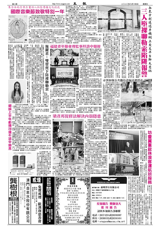 【特訊】因受新型冠狀病毒肺炎疫情影響,原定於今年10月舉行的澳門國際音樂節將改變過往模式,以「致特別的一年”為主題,自8月22日起推出集合本地音樂力量的節目及「戲中作樂——電影放映”、街頭鋼琴計劃及「環保樂器製作工作坊”等9項共20場次活動,將音樂輸送到城市每一個角落,滿足市民對文化多樣性的需求,並持續以文化抗疫的力量為澳門及其他正受疫情困擾的地方加油。今年音樂節多項社區演出和活動免費,部分工作坊及活動可於8月17日起登入文化局網頁報名。