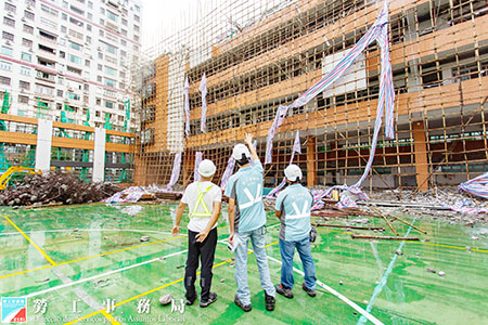 【特訊】颱風「海高斯」吹襲過後,建築工地有可能遭受不同程度的破壞,勞工局於昨日(19日)下午派員對風後存在職安健隱患的建築工地或工程地點進行視察,一共巡查了31個建築工地或工程地點,勞工局將繼續派員到各建築工地巡查及呼籲建築工地復工前做好職安健工作。