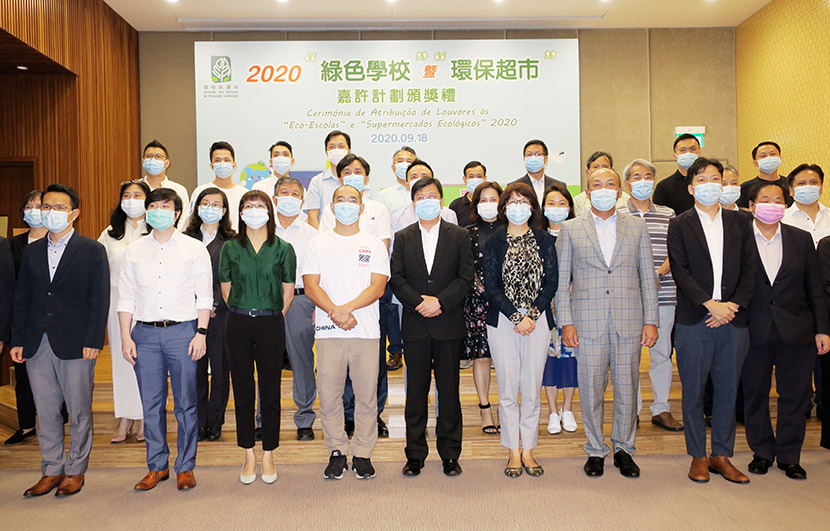 昨日頒獎禮於環保局演講廳舉行,今年合共三十八間學校參與「綠色學校嘉許計劃」,經評審最終共二十八間學校獲獎,其中化地瑪聖母女子學校、培正中學、聖羅撒英文中學、氹仔中葡學校、濠江中學附屬英才學校、澳門大學附屬應用學校、澳門浸信中學獲頒「綠色學校白金獎」,該獎項為今年首設,以表揚連續五年積極開展環境教育工作的綠色學校。