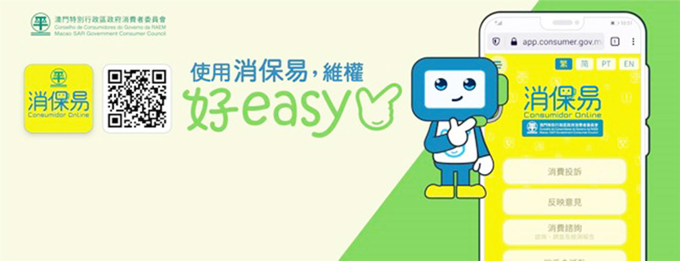 「消保易」具便民與高效等優點,操作簡易,消費者只需利用手機等移動裝置掃描「消保易」的二維碼(QR Code)或透過網頁連結(https://app.consumer.gov.mo/wapp)就可隨時隨地登入「消保易」使用平台內的「消費投訴」、「反映意見」、「消費諮詢」及「消委會活動」各專區的服務。