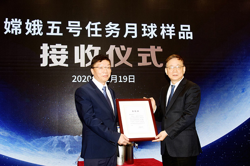 侯建國指出,嫦娥五號探測器將採集的月球樣品帶回地球,中國首次實現地外天體採樣返回,也是人類時隔44年再次將月球樣品帶回地球,使中國成為世界上第三個從月球取回樣品的國家。「國家將嫦娥五號任務月球樣品正式移交給中科院,這既是崇高的榮譽,更是賦予中科院的重大責任」。