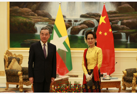 【中新社北京1月12日電】當地時間1月11日,中國國務委員兼外長王毅在內比都同緬甸國務資政兼外長昂山素季舉行會談。