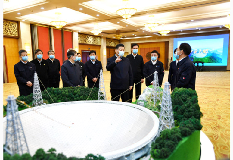 習近平通過視頻察看「中國天眼」現場,並同總控室的科技工作者代表連線,向他們並向全國廣大科技工作者拜年。習近平強調,全面建設社會主義現代化國家,必須堅持科技為先,發揮科技創新的關鍵和中堅作用。他勉勵廣大科技工作者以南仁東等傑出科學家為榜樣,大力弘揚科學家精神,勇攀世界科技高峰,在一些領域實現並跑領跑,為加快建設科技強國、實現科技自立自強作出新的更大貢獻。
