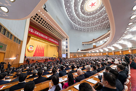 下午3時許,習近平等黨和國家領導人步入會場,與2100余名全國政協委員共同出席會議。