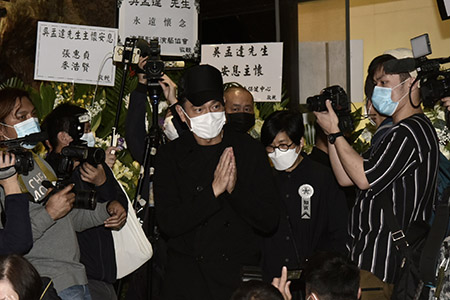 周星馳約下午4時許抵達靈堂送別吳孟達最後一程,逾10分鐘後離開;周星馳所送的花牌上寫著“永遠懷念”,擺放在家屬的右邊。