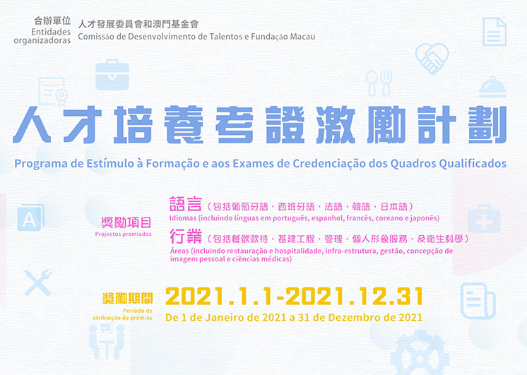 【特訊】由人才發展委員會及澳門基金會合辦的「人才培養考證激勵計劃」(下稱「計劃」)於2021年繼續推行,獎勵目錄包括:外語能力測試、行業導向認證考試、「現代金融人才專業認證」及「資訊技術人才專業認證」。「計劃」自2017年起推行,以提升居民個人職業技能、促進向上流動、融入社會發展為目標,對鼓勵居民考證起積極作用。