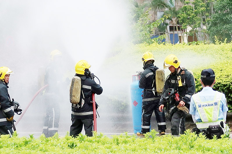 【特訊】一部運送石油氣的貨車,於昨日早上行經路氹連貫公路近巴黎人時,其中氣瓶漏氣,消防接報到場開喉射水降溫,金光大道一段須封閉逾兩小時,事件中無人不適及受傷,石油氣公司維修人員表示,懷疑事件是因石油氣瓶掣頭失靈導致漏氣,真正起因有待進一步調查。