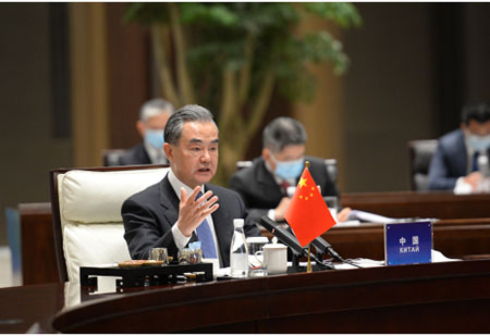 王毅表示,中國和中亞五國外長在疫情形勢下舉行實體會晤,體現了六國共同戰勝疫情的信心和加強團結協作的決心。自去年7月“中國+中亞五國”外長首次會晤以來,我們克服疫情衝擊,以元首外交為引領,以抗疫合作為主線,全力守護人民安全,多措並舉復工復產,深度推進互聯互通,為區域協同發展和經濟復蘇注入了源源不斷的動力,為地區和平與發展作出了實實在在的貢獻。事實證明,中國與中亞國家集體合作恰逢其時,前景廣闊,大有可為。