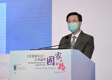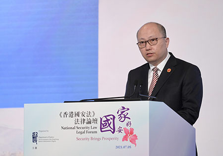 【香港中通社7月5日電】(記者 王姝)香港國安法實施一周年之際,香港特區政府律政司5日舉辦香港國安法法律論壇,以“國安家好”為題,匯聚法律專家就香港國安法的應用和詮釋進行討論及交流,增進社會各界對國安法的了解和認識。