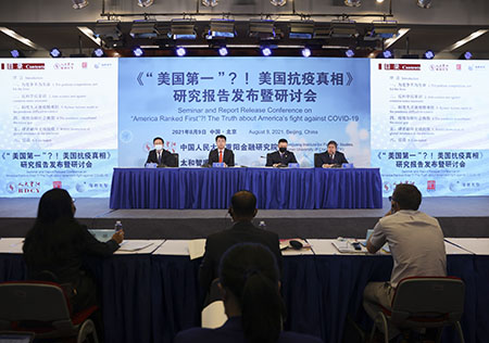《“美國第一”?!——美國抗疫真相》研究報告當天在北京發佈,這是目前全球首份關於美國抗疫真相的智庫研究報告,以駁斥關於“美國抗疫全球第一”排名的荒謬。