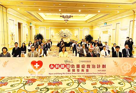 「永利鏡湖危重症救治計劃」新聞發佈會昨日在永利澳門會議廳舉行,並由永利澳門副主席兼執行董事、永利關愛基金會主席陳志玲以及鏡湖醫院慈善會理事長劉永誠,分別代表雙方就該計劃正式簽訂了合作意向備忘錄。出席活動的其他嘉賓還包括中聯辦社會工作部助理張思賢、澳門社會工作局代副局長鄧玉華、鏡湖醫院慈善會常務副理事長黃國勝、鏡湖醫院慈善會副理事長兼鏡湖醫院院長吳培娟、鏡湖醫院慈善會副理事長吳在權等。