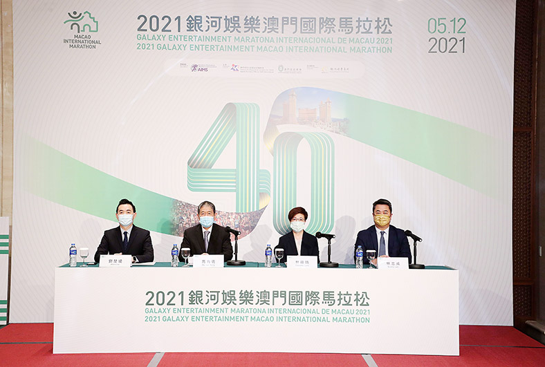 賽事組委會昨日舉行新聞發佈會公佈賽事詳情及報名安排,出席的嘉賓包括體育局代局長林蓮嬌、澳門田徑總會會長馬有恆、銀河娛樂集團公共關係高級副總裁林志成及體育局副局長劉楚遠。