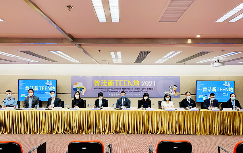 「普法新TEEN地」青少年法律推廣月新聞發佈會昨日舉行,多個政府部門代表出席介紹相關活動的詳情。法務局法律推廣及公共關係廳廳長陳志揚表示,為配合特區政府《澳門青年政策(2021-2030)》的推行,持續加強向青少年普法的工作,今年法務局將聯同教青局、市政署、經科局、勞工局、警察總局、治安警察局、司法警察局、文化局、衛生局、社工局及環保局,合共十二個「青年政策」跨部門跟進小組的成員,一同合辦「普法新TEEN地青少年法律推廣月」活動。
