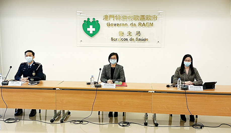 新型冠狀病毒感染應變協調中心昨日舉行記者會,旅遊局傳播及對外關係廳廳長劉鳳池、治安警察局公共關係處處長李德輝、疾病預防控制中心傳染病防制暨疾病監測部協調員梁亦好共同會見傳媒。