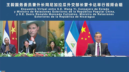 【中新社安吉12月10日電】中國國務委員兼外長王毅10日在浙江安吉同尼加拉瓜外長蒙卡達舉行視頻會晤。