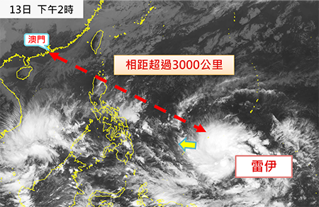 氣象局表示,位於西北太平洋上的熱帶氣旋「雷伊」,預料將在本週後期橫過菲律賓中南部後進入南海。根據記錄,本澳對上一次於冬季(十二月)受熱帶氣旋影響而發出熱帶氣旋信號可追溯至一九七四年。但是,由於目前「雷伊」距離本澳超過三千公里,其移動路徑及發展情況的不確定性仍然相當大。